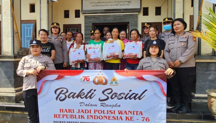 TANAAN – Dalam rangka HUT Polwan dan HKGB Tahun 2024, Polwan Polres Tabanan bersama Bhayangkari dan Relawan Bali menggelar kegiatan Bakti Sosial, di wilayah Kecamatan Tabanan, Bali, Seni (12/08/2024).